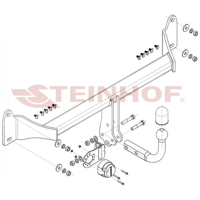 Фаркоп Steinhof з болтовим кріпленням — класичне рішення для тих, хто потребує міцності та простоти. Конструкція передбачає надійне з’єднання за допомогою болтів, що гарантує безпеку під час буксирування та перевезення вантажів.