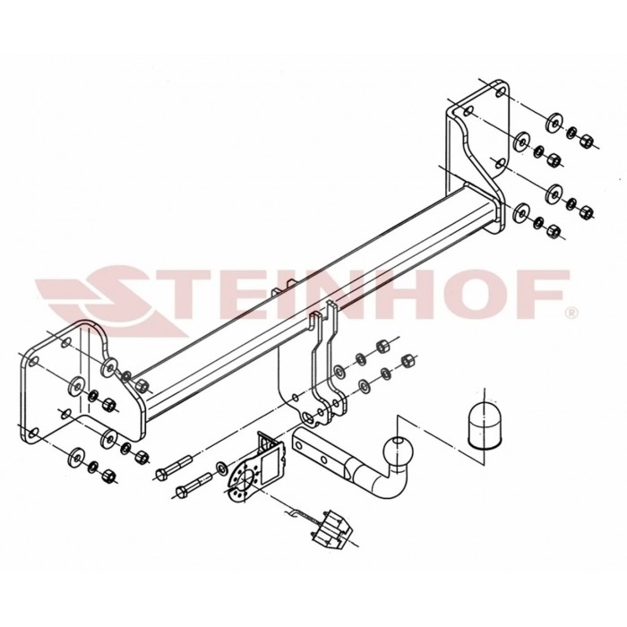 Фаркоп Steinhof з болтовим кріпленням — класичне рішення для тих, хто потребує міцності та простоти. Конструкція передбачає надійне з’єднання за допомогою болтів, що гарантує безпеку під час буксирування та перевезення вантажів.