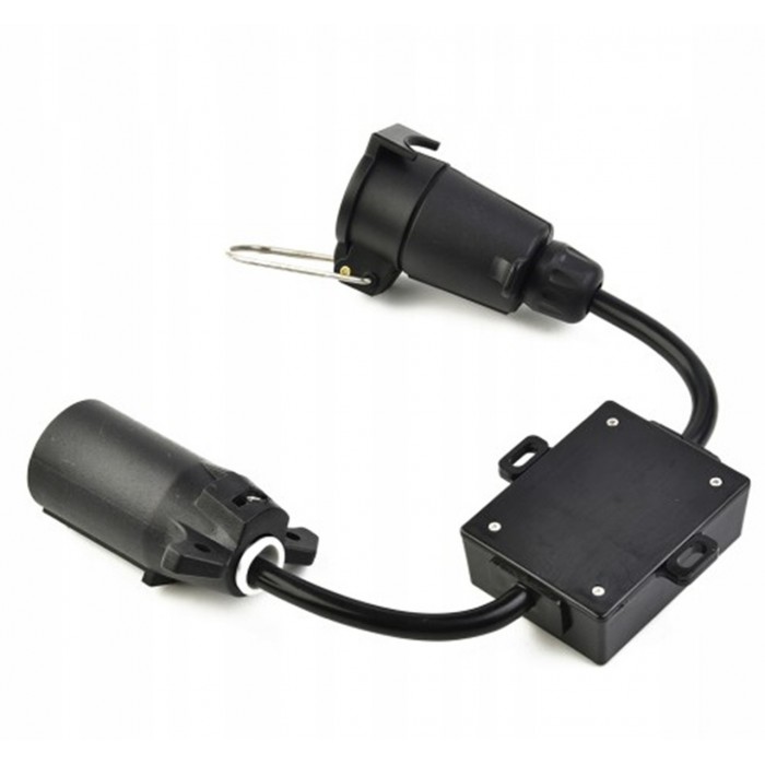 Цей адаптер дозволяє легко підключати причепи або фаркопи з американською електричною вилкою до європейського стандарту. Завдяки йому ви зможете без проблем використовувати причеп, на автомобілі який привезений із США.