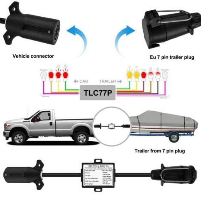 Підключення причепів, кемперів, багажних платформ та іншого обладнання з американським електричним роз’ємом до автомобілів з європейським стандартом розетки.