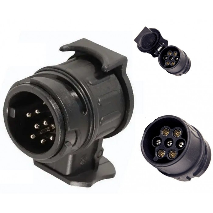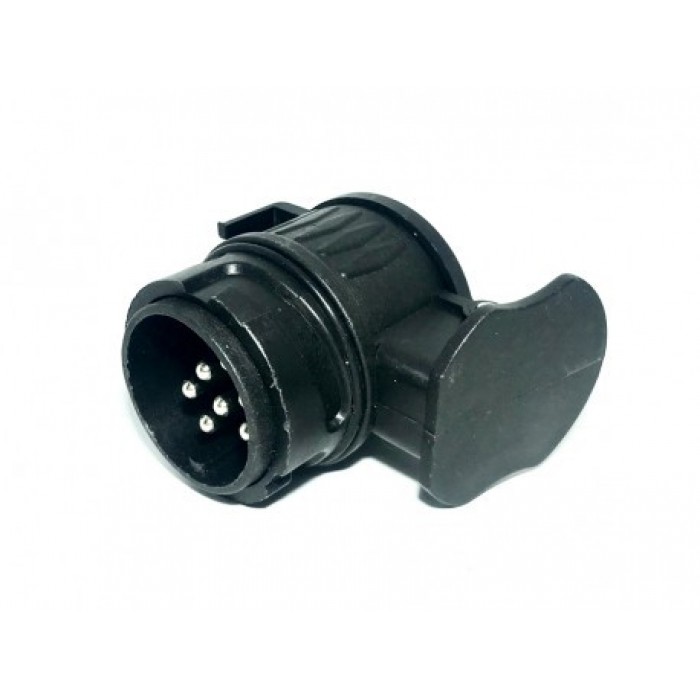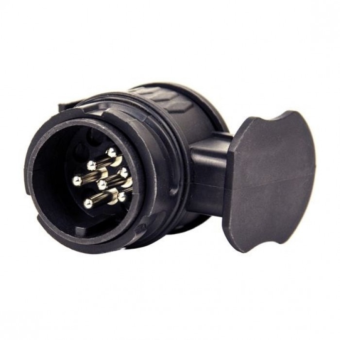 Адаптер-перехідник призначений для перекладу з 13-ти пинового роз'єму (розетка на автомобілі, мама) в 7-ми піновий (вилка на причепі, тато). Дуже часто пригнані автомобілі з Європи зустрічаються вже з встановленим фаркопом і розеткою на 13 контактів, а на наших причепах коштує 7-й контактна вилка. Перехідник з 13 на 7 допомагає їх з'єднати.